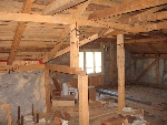 3.Mansarda este o constructie usoara , necompartimentata .Este inceputa izolatia cu vata de sticla si rigips.Deasupra baii este turnat plansu din beton si este trasa teava pentru canalizare.
